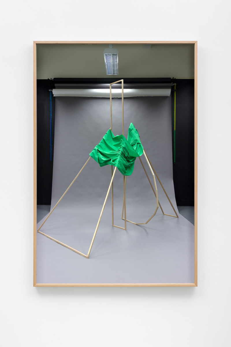 The word conversation connotes talking. Which two halves of myself are in discussion? What is it that I am trying to reconcile, work through and work around? A potential outtake. Their bodies are close, but their feet are drawn apart. They are moored to one another, by the cloth and by their footing. The curve of the two sculptures will be echoed by the seat. ‘One always locates one’s own image in an image of the other and, one always locates the other in one’s own image.’2 A place of theatricality. The performativity of self-realization. The sculptures function as stand-ins; as props. There is a roundness here. Are you breathing with me? Are you breathing too?